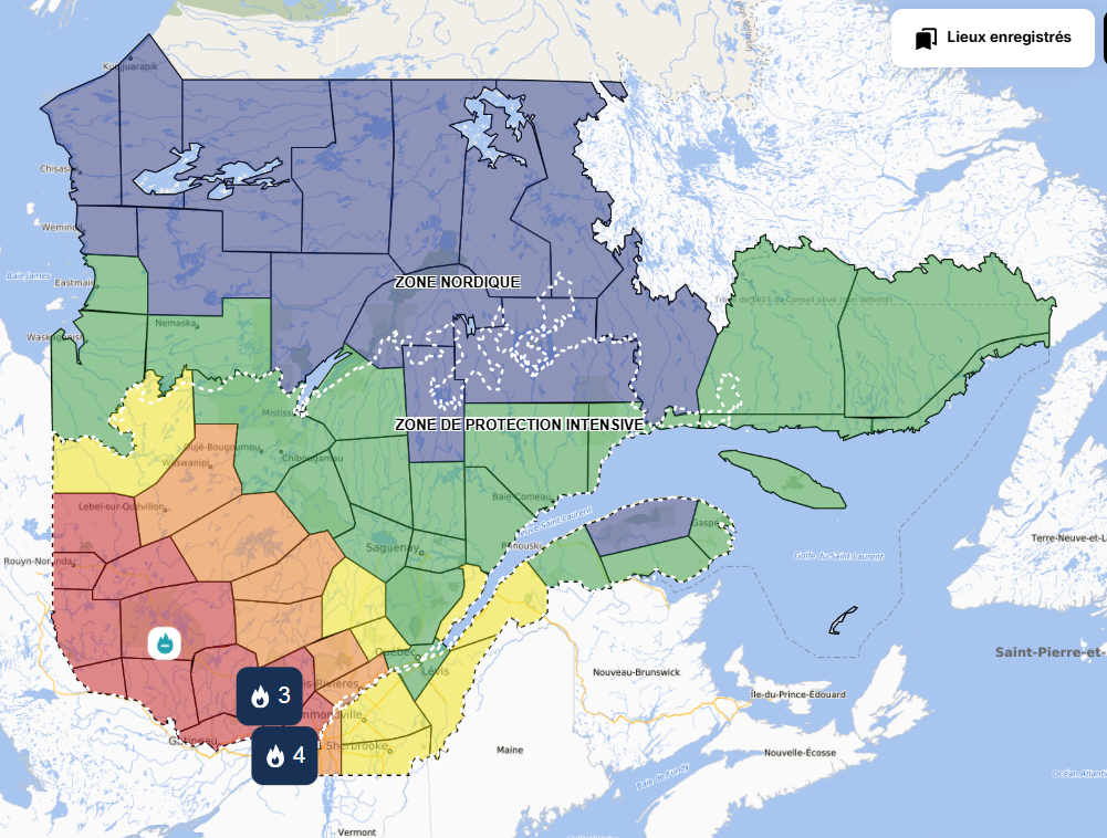 Consultez fréquemment la carte de la SOPFEU pour connaître l’indice d’inflammabilité et les restrictions en vigueur avant d’allumer un feu autorisé.