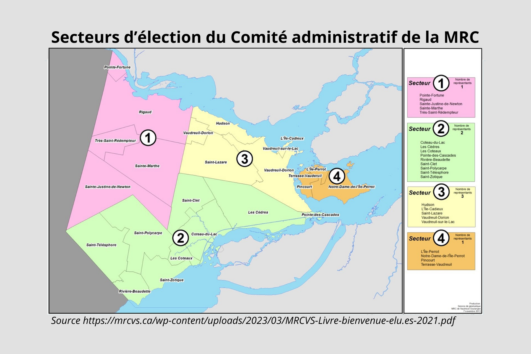 Rappelons que le Conseil administratif se compose du préfet, de la préfète suppléante et de sept (7) maires et mairesses parmi les vingt-trois (23) maires de la MRC. Monsieur Meunier aura le plaisir de travailler aux côtés de Sylvain Brazeau, maire de Les Coteaux, et Peter Zytynsky, maire de Pointe-des-Cascades, pour le secteur 2; de Paul Dumoulin, maire de Vaudreuil-Dorion, Chloé Hutchison, mairesse d’Hudson, et Mario Tremblay, maire de Vaudreuil-sur-le-Lac, pour le secteur 3; et Danie Deschênes, mairesse de Notre-Dame-de-l’Île-Perrot, pour le secteur 4.