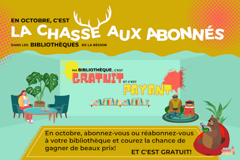 Jusqu’au 31 octobre 2025, Réseau BIBLIO de la Montérégie invite tout résident, peu importe l’âge, et tout non-résident, dont la municipalité est membre de Réseau BIBLIO, à s’abonner, ou se réabonner, à la bibliothèque jusqu’à 20 h le vendredi 31 octobre 2025 et ce, pour courir la chance de gagner l’un des superbes prix qui seront tirés dans le cadre de son concours « La Chasse aux abonnés » !