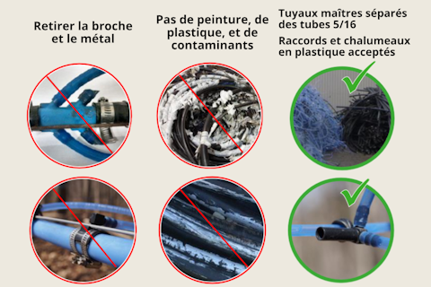 L'écocentre de Rigaud offre un point de collecte pour les tubulures usées provenant des érablières de la région. Le dépôt est gratuit, mais la décharge se fait manuellement. Les véhicules lourds et les tracteurs sont interdits sur le site.