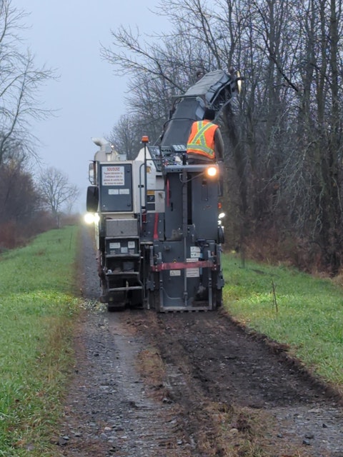 C'est le mercredi 30 octobre que le planage d'un tronçon de la voie ferrée compris entre le chemin Saint-Thomas et la frontière ontarienne a débuté. Ce tronçon sera asphalté sur une longueur de 75 m pour évaluer la durabilité d'un nouveau bitume recyclé (MR-7) lors des périodes de gel et de dégel jusqu'en 2025.